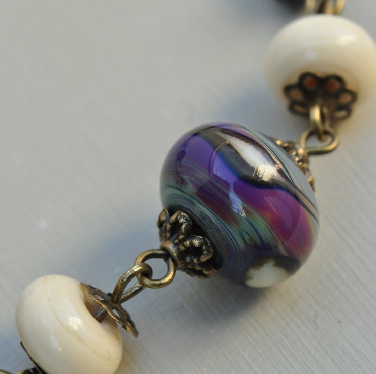 This is a totally one off piece of jewellery. The Lampwork beads are by UK Lampwork Artist Yvonne Johnson, each one being unique in itself.