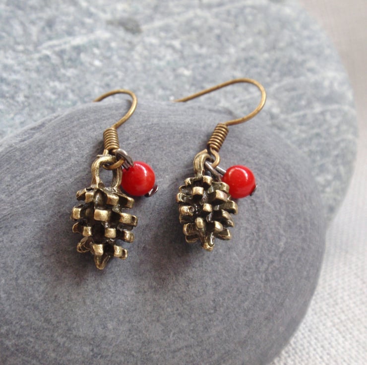 I love celebrating nature in my jewellery, these pine cones are lovely for this time of year, especially around Christmas time. I have made an autumnal version with a forest green bead too, please take a look.
