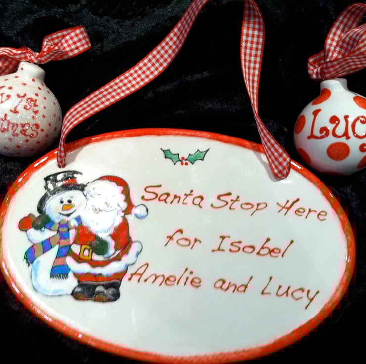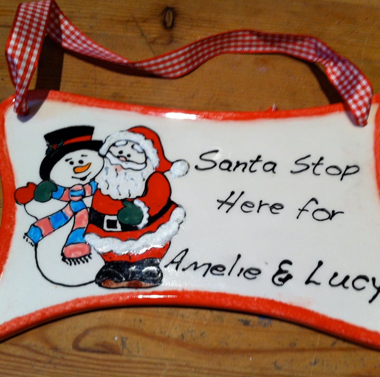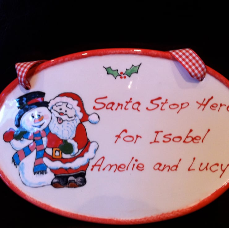 Make sure Santa doesn't miss your house this year with this personalised plaque containing your children's names, and comes complete with a Red & White gingham ribbon.