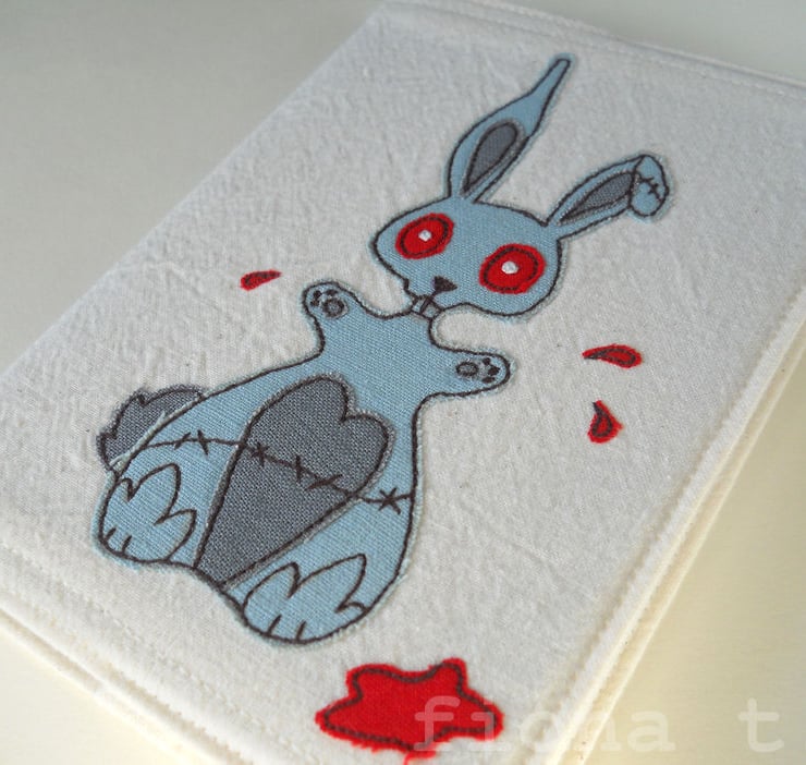 embroidered zombie rabbit fabric notebook cover and A6 sketchbook.