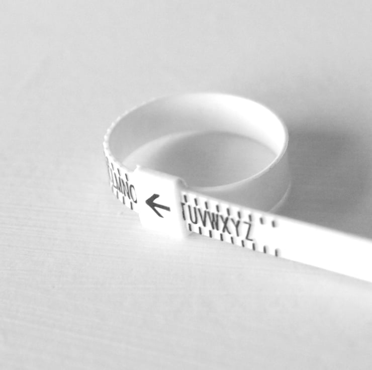 Want to know how to measure your Ring Size? This simple to use adjustable measure simply wraps around your finger and shows you your size!
