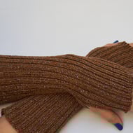 Handmade and knitted with cotton blend and acrylic blend yarn, length 23cm width 9.5cm one size should fit all due to the stretching of the knit. Soft to touch