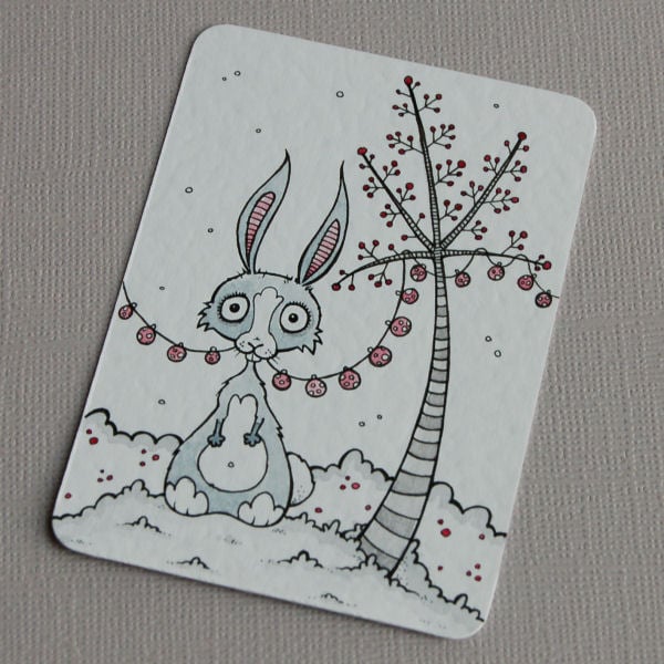 this is an original illustration in artists pens and watercolour paints, on textured white card. drawn in fine detail with a tiny 0.05 nibbed pen, and carefully painted with just the very tip of a tiny paintbrush!