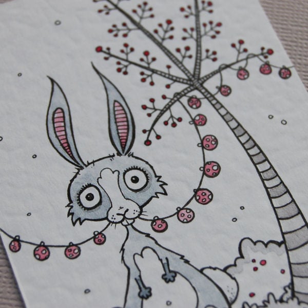 this cute rabbit is getting ready to party, and hanging up his fancy party lights!