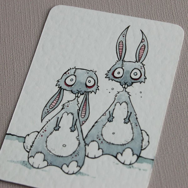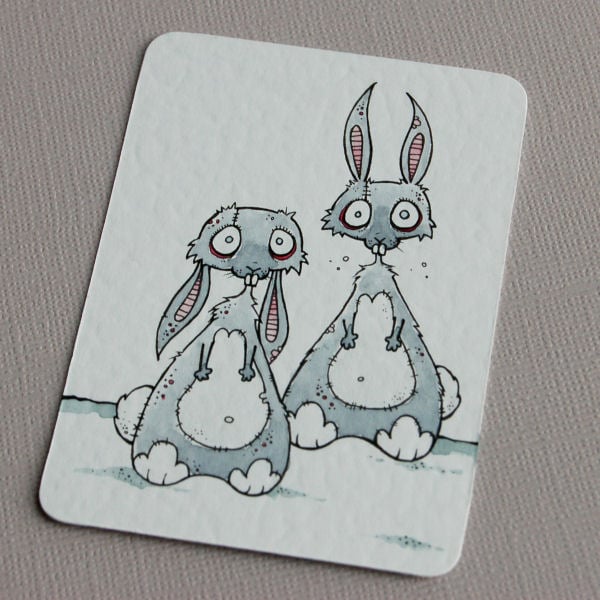 a cute pair of festering zombie bunnies... a perfect gift this festive season!