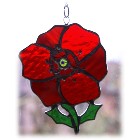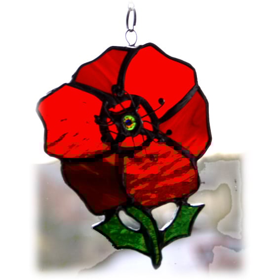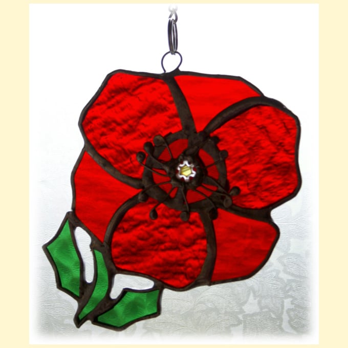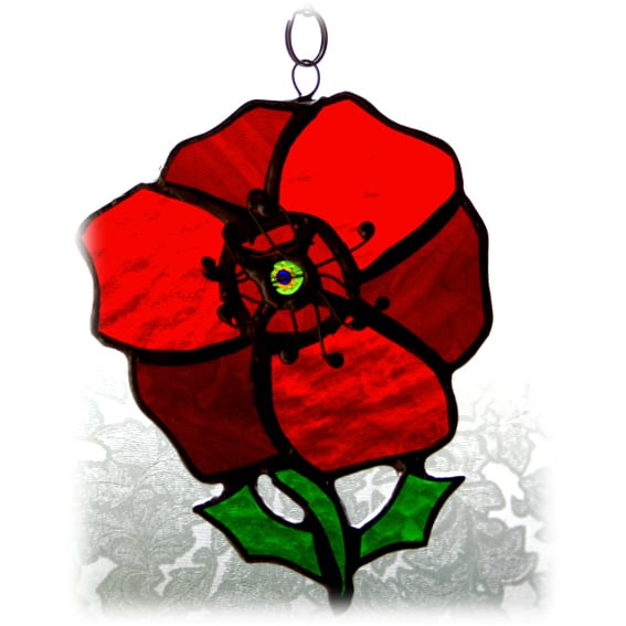 This is one of my favourite designs - a poppy - a stained glass suncatcher made using the Tiffany copper foil technique.