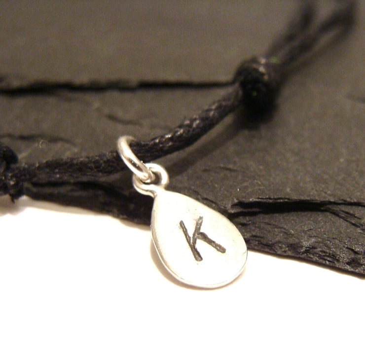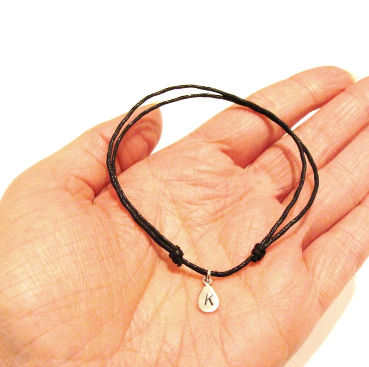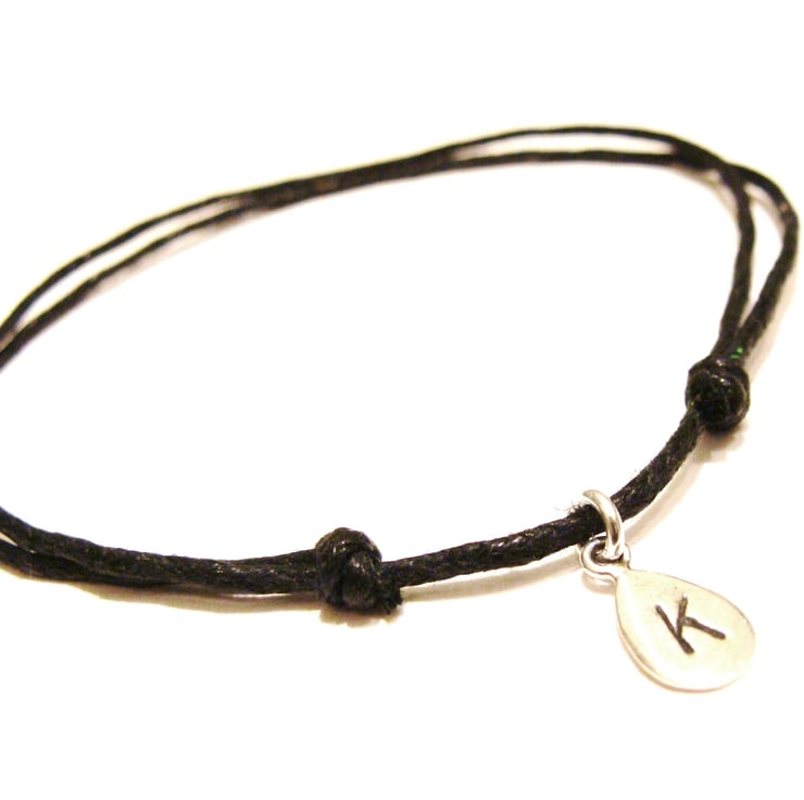 Personalised keepsake friendship bracelet made with your choice of cord colour and sterling silver initial charm.