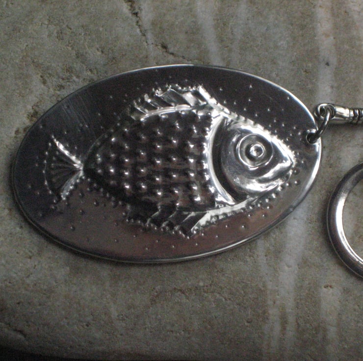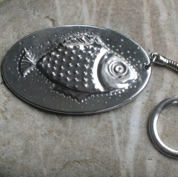 This keyring has been hand-made in shiny modern pewter. (The design has been raised on a piece of sheet pewter, the raised area has been filled,then mounted on a rigid base) The oval measures 60 x 37mm,and is light in weight.
