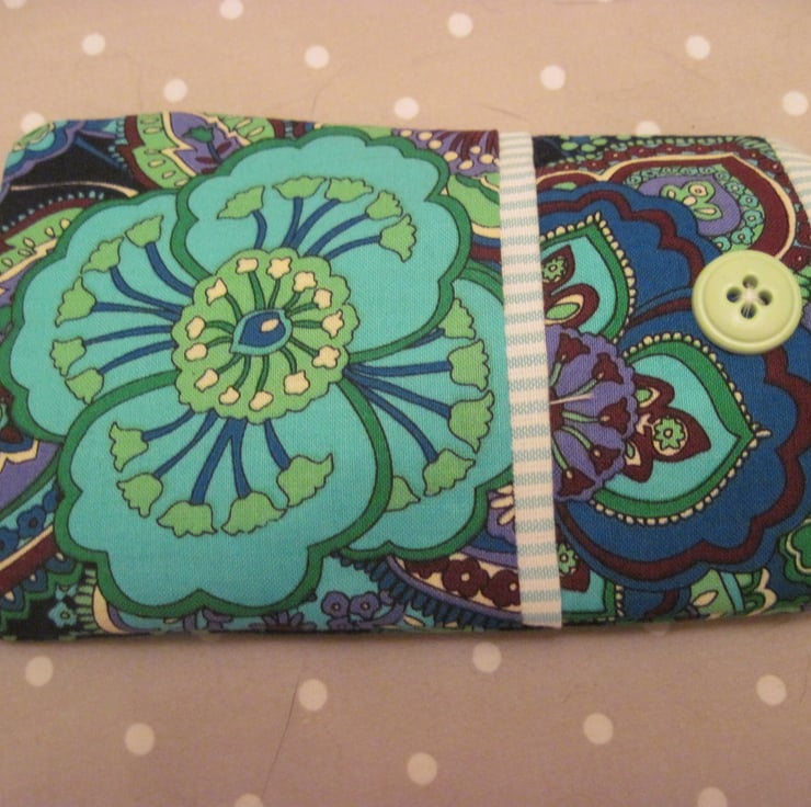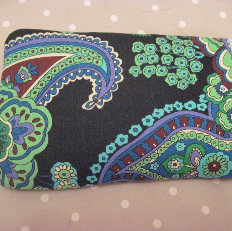 It will provide protection for your phone, while looking super funky in the quirky green and blue fabric.