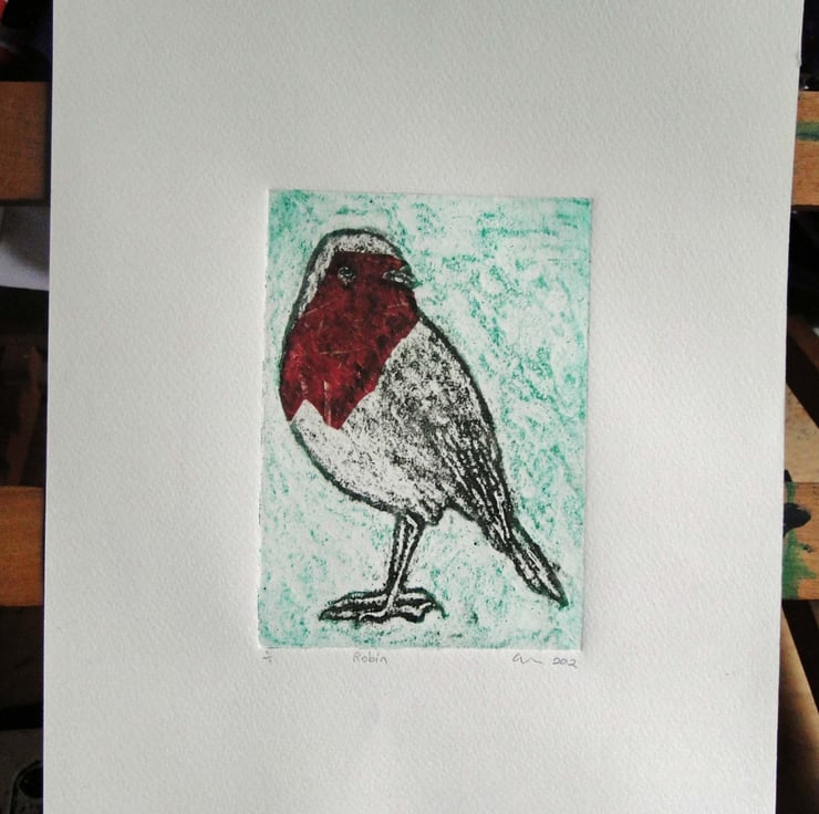 Robin Collagraph Print one-off, each one is different.