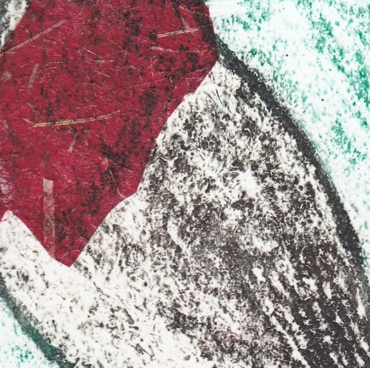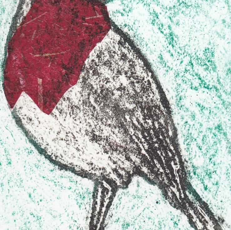 Robin One-Off Hand Pulled Collagraph Print with Red Chine Colle