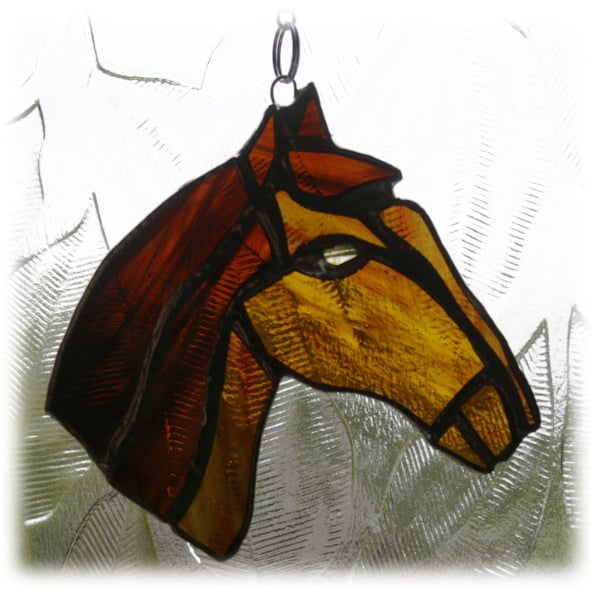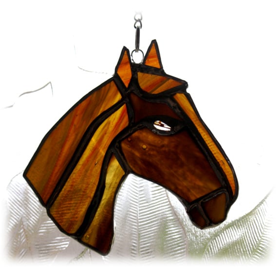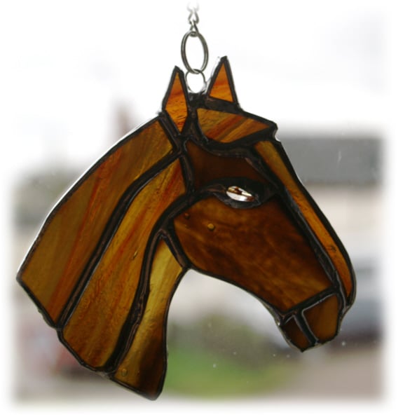 The suncatcher hangs from a little chain which is securely attached to the top of horse. It is approximately 10cm high and wide.