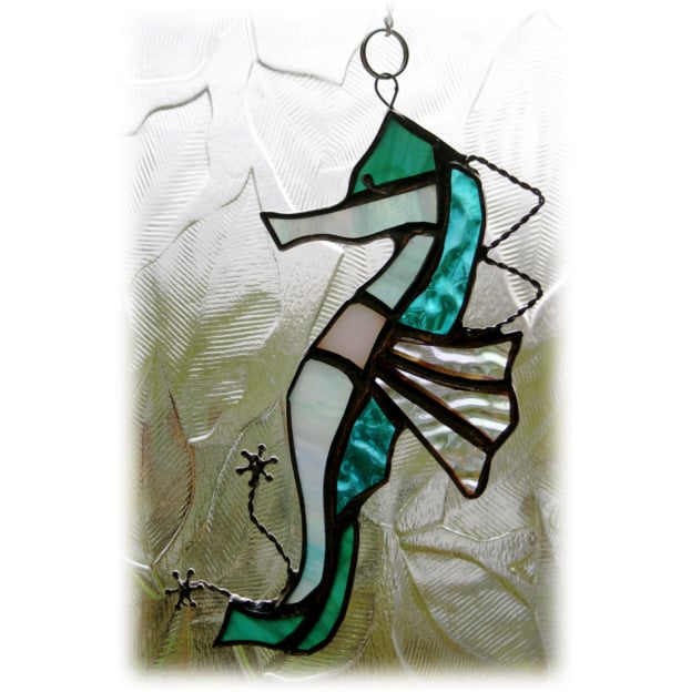 This is a stained glass suncatcher made using the Tiffany copper foil technique.