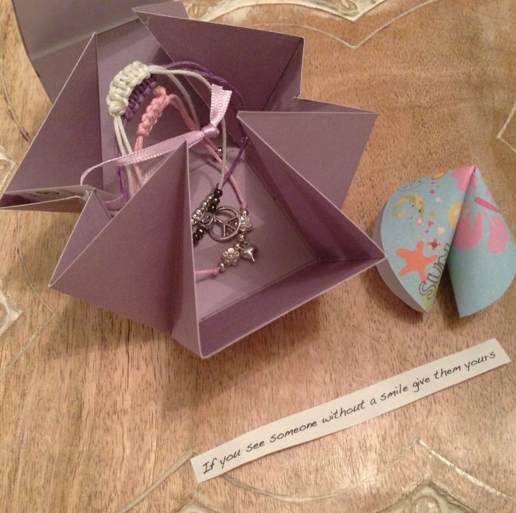I wanted to make something that could be given as a gift and the fortune cookie was a fun way to add a little message.