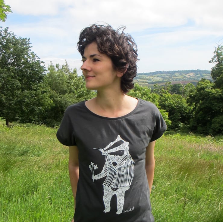 Hand screen printed onto lovely rolled sleeved cotton T-shirts with eco-friendly inks.