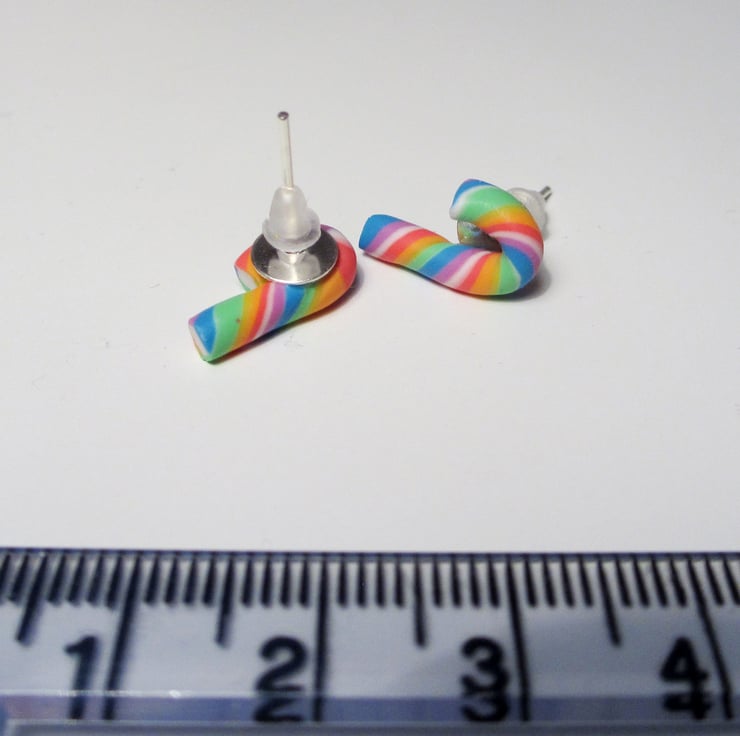 A bright rainbow multi-coloured pair of candy cane earrings! Stand out from the crowd with these!!
