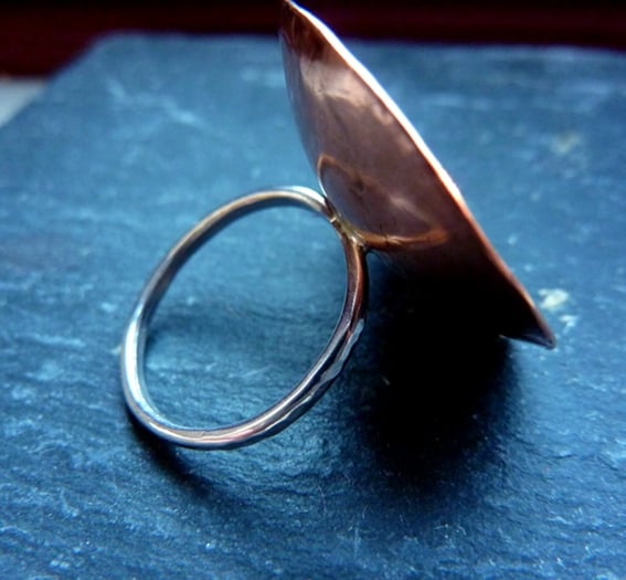 Gorgeous statement rings. Large (approximately 25mm diameter) copper domed rings with sterling silver ring band.