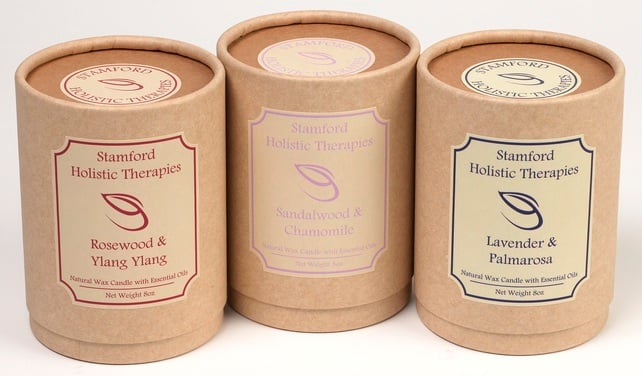 Aromatherapy Candles. Handmade with love from natural wax and essential oils by Stamford Holistic Candles.