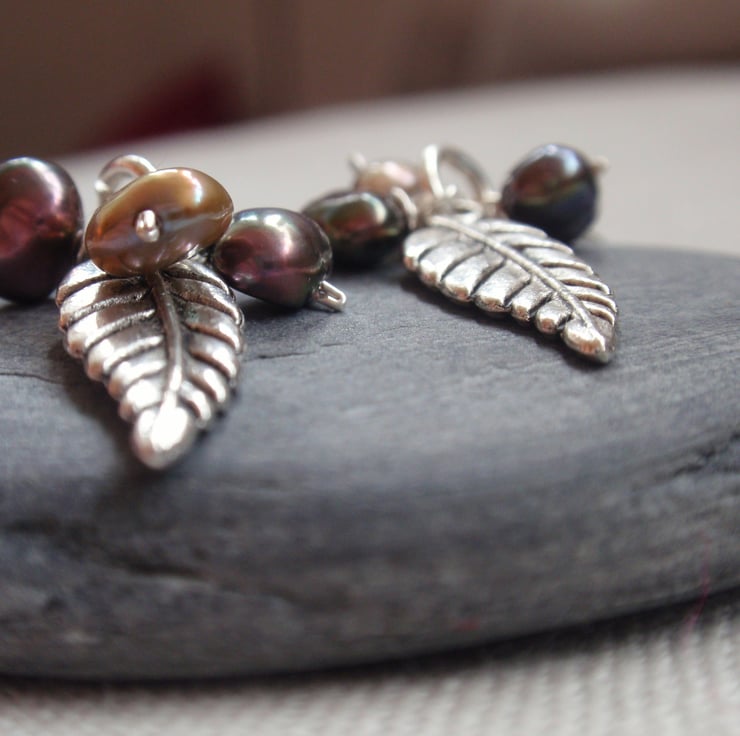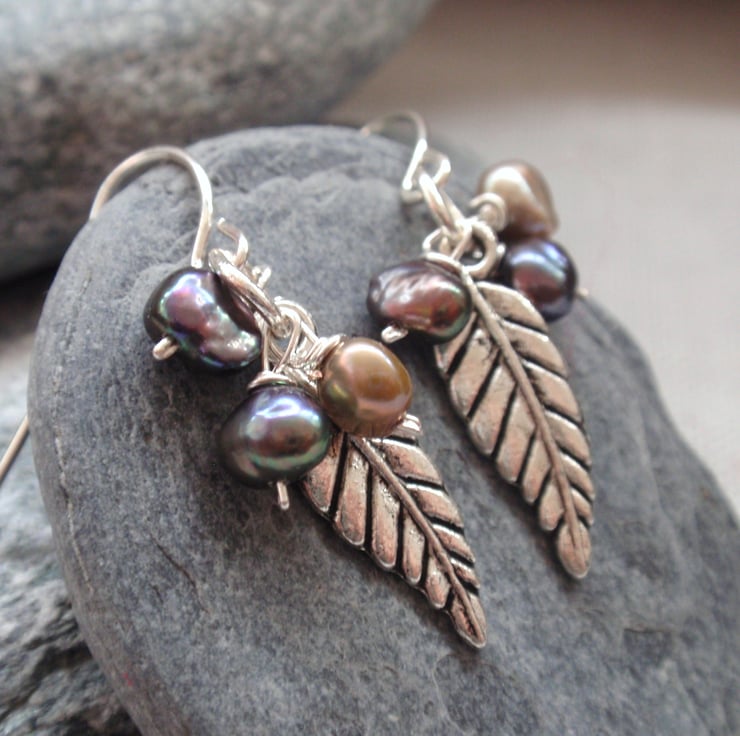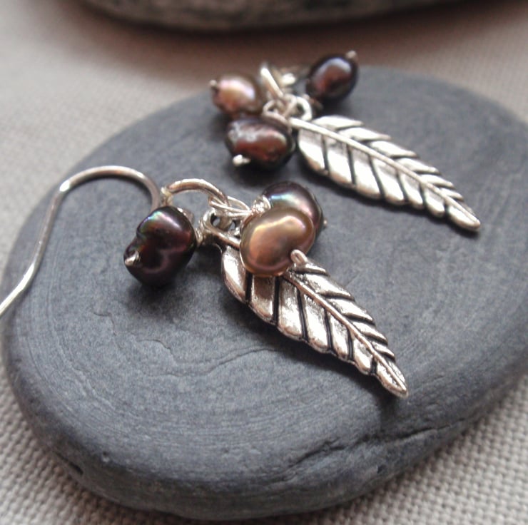 A sophisticated take on the tribal trend, these feathers are adorned with simple browny grey nugget pearls