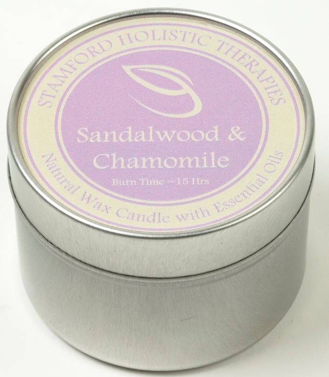 Aromatherapy Tin Candle. Handmade with love from natural wax and essential oils by Stamford Holistic Candles.