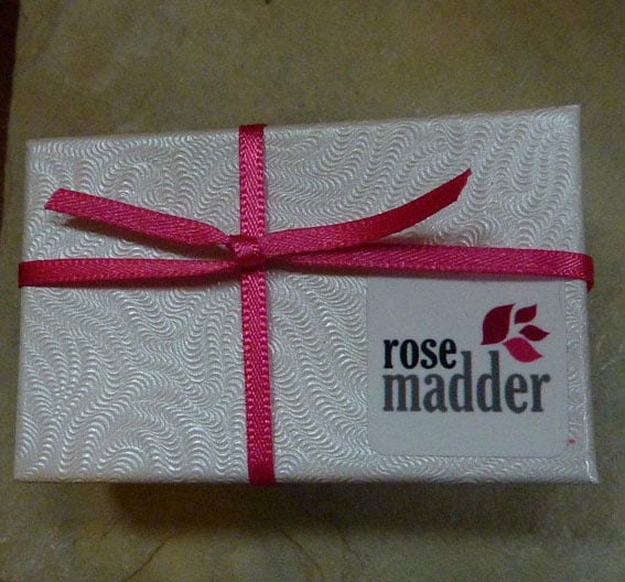 Presented in a lovely Rose Madder gift box and tied with ribbon.