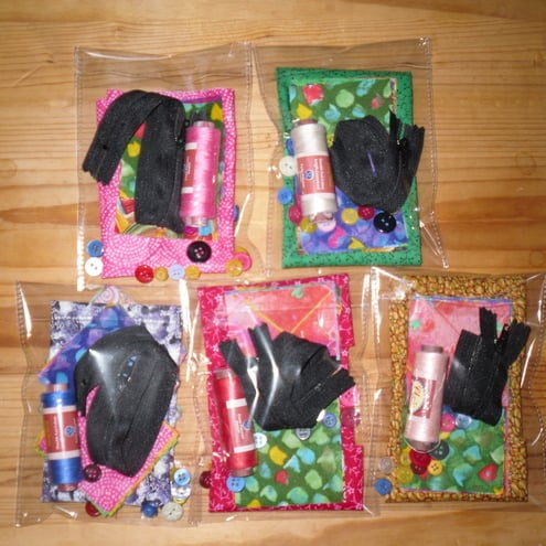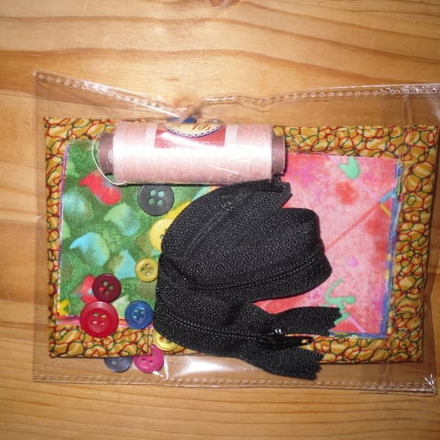 I have prepared a kit with everything you need to make your own patchwork purse, as described in the "makes". It contains your 24 pre-cut patchwork squares, 2 pieces of lining fabric, the zip, 12 buttons and a thread for sewing and quilting.