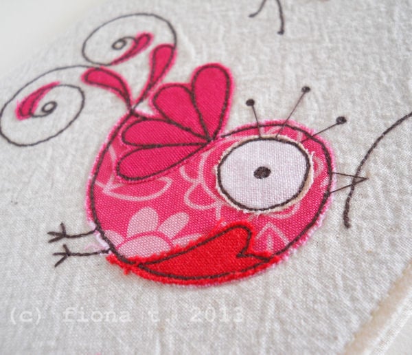 the fabrics are layered and appliqued onto pre-washed calico, the detail drawn on with free machine (free motion) embroidery. i then make up the finished item.