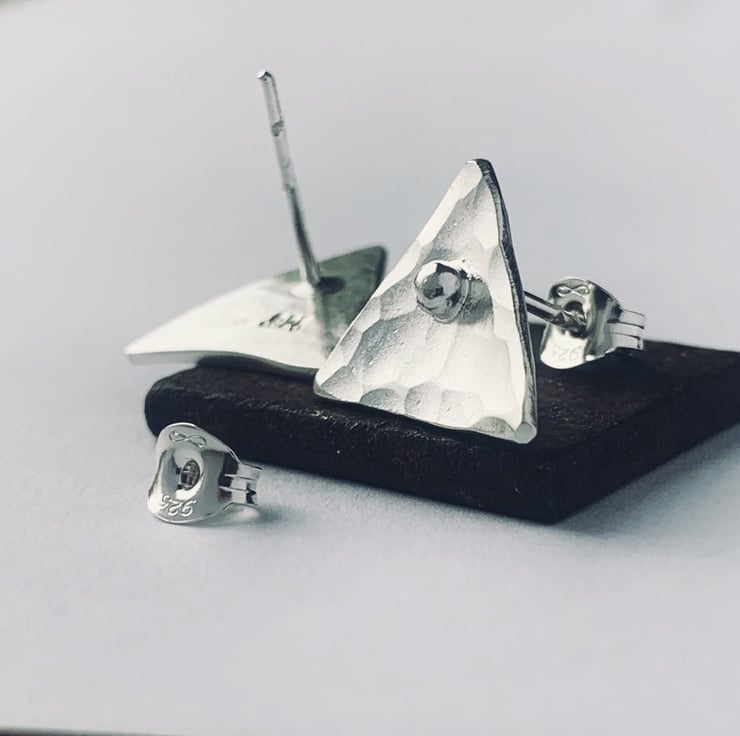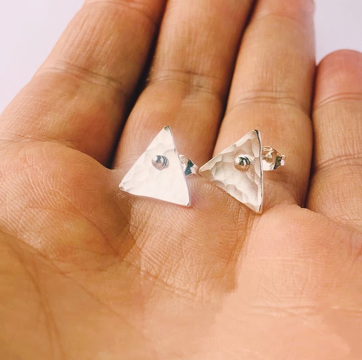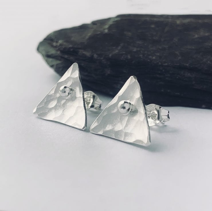 Silver earrings have been softly hammered slightly domed & tumbled to give texture and strength.