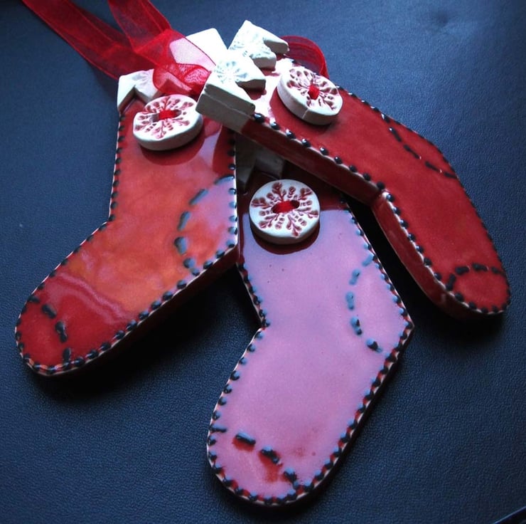 This cute little Christmas stocking is made from white earthenware clay and handcut around my own design of stocking.