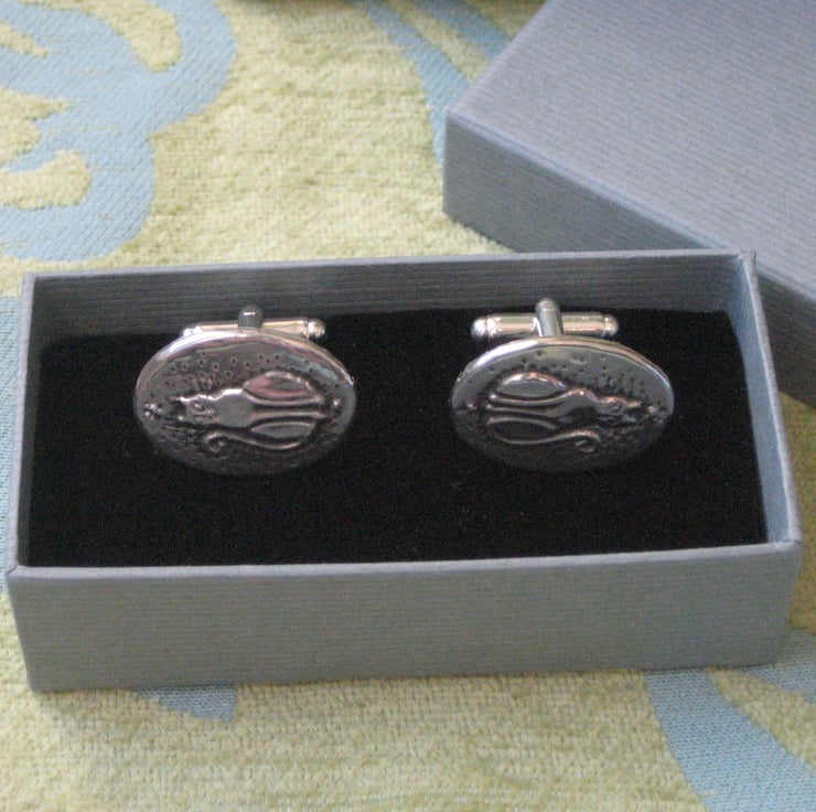 These cufflinks have been individually hand-made in pewter. Each one measures 26 x 20mm. Presented in a smart grey gift box.