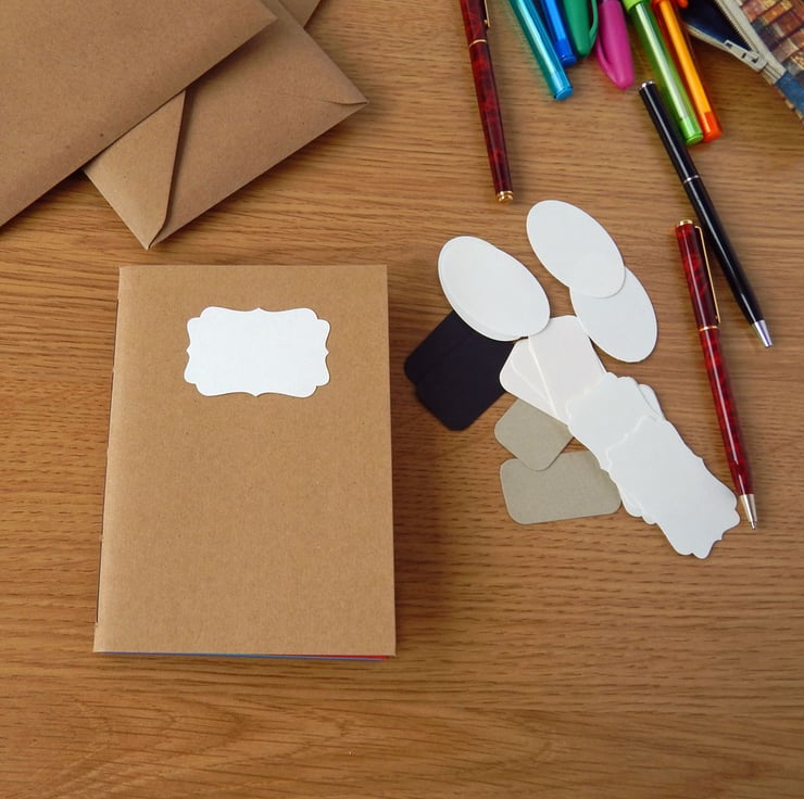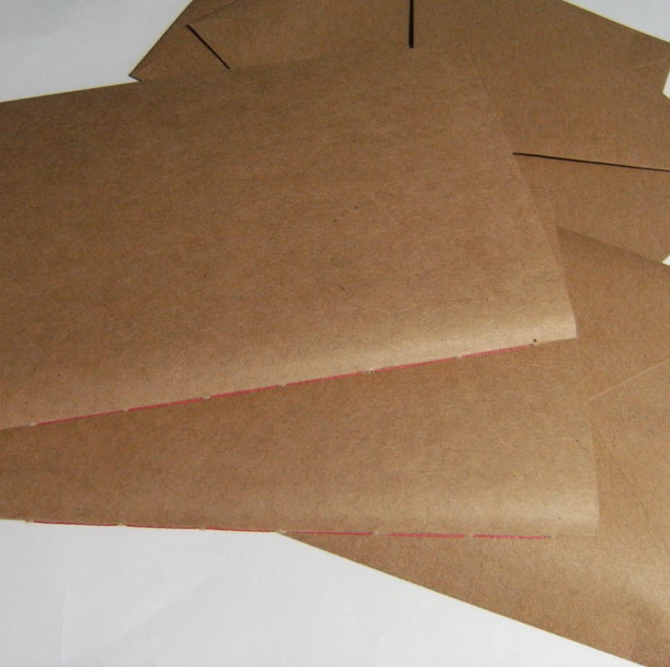 My Kraft covered notebooks are very popular and I have been expanding the range. I now offer these in four sizes: A5 (21x15), Narrow A5 (21x11), A6 (15x10), 7"x5" size, also occasional special little books of 4" square.
