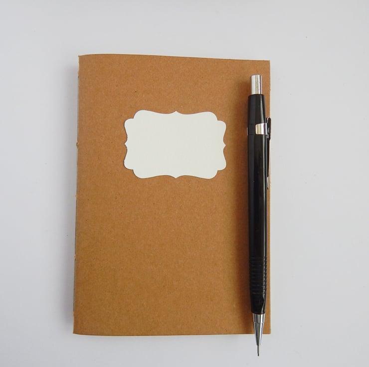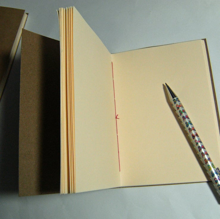 A handbound notebook, with kraft card covers and text paper pages. Made to Order for you.