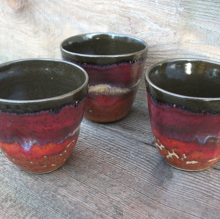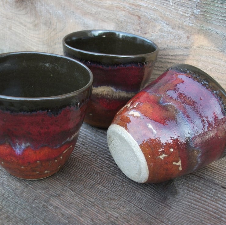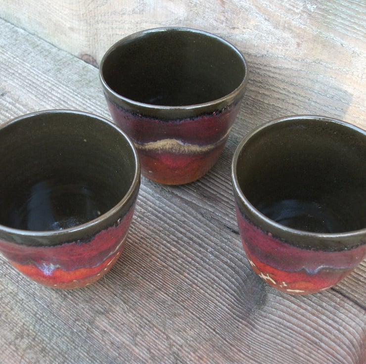 These three MINI TUMBLERS were thrown on the potter's wheel.