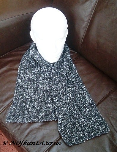 The slate toned yarn for this knitted scarf is a Denys Brunton designer yarn and is wonderfully soft and is perfect shade for those who love monochrome and grey tones, but with a hint of added interest, as I have teamed it with a black and white thread yarn, to give a mottled effect.
