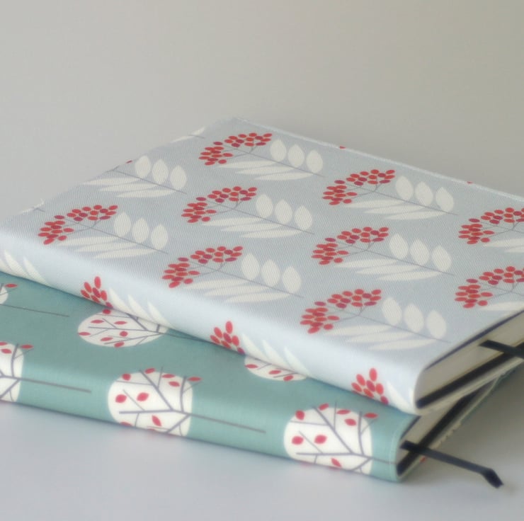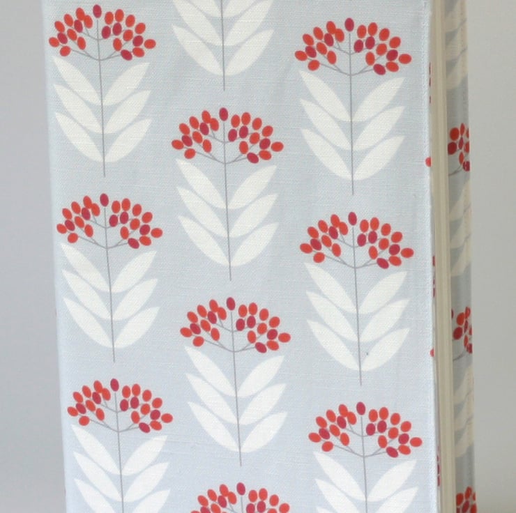 A large A5 sized notebook with a removable fabric cover made from some of my Elderberry print linen mix fabric.