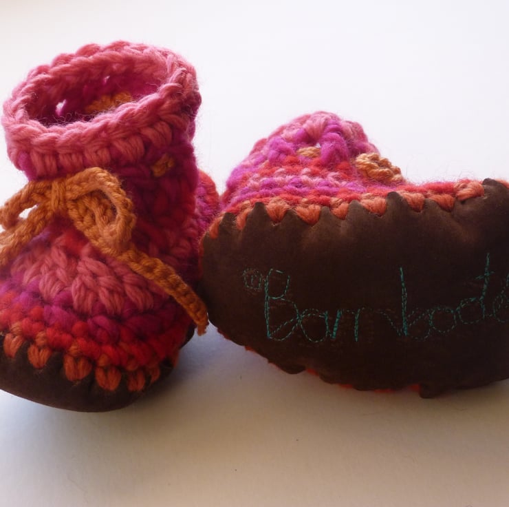 These funky little boots will keep your baby's feet snug and warm and add a dash of colour to any outfit. Warm woollen fabric with stretch for comfort and growing room plus a soft suede non-slip sole. A perfect gift for a baby or girl.