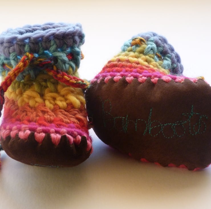 These funky little boots will keep your baby's feet snug and warm and add a dash of colour to any outfit. Warm woollen fabric with stretch for comfort and growing room plus a soft suede non-slip sole. A perfect gift for a baby boy or girl.