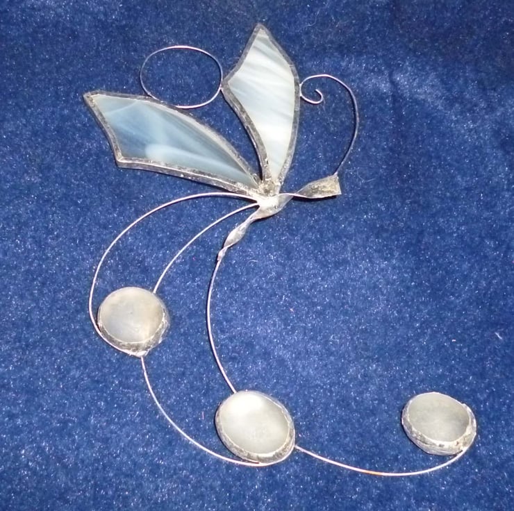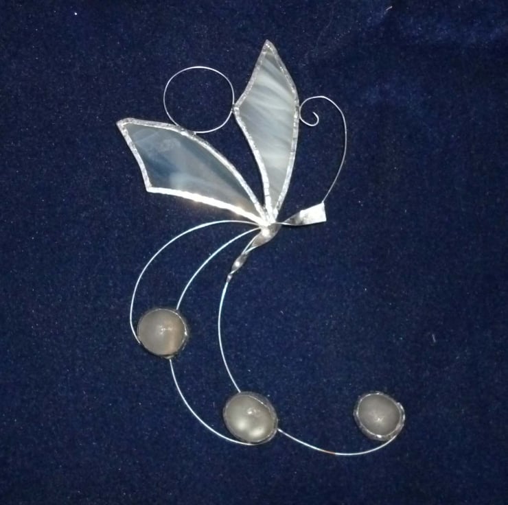 A hand made delicate stained glass butterfly, made to be used as a wall or window decoration.