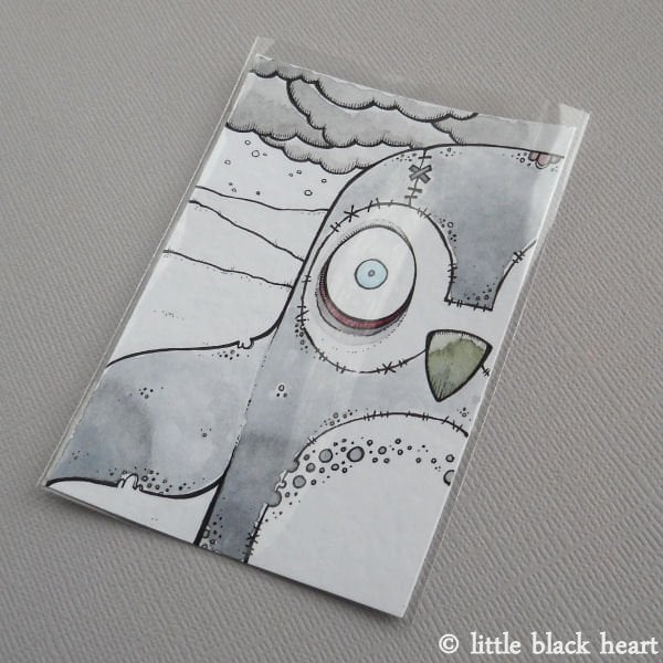 this is an original artwork in artists pens and watercolour paints, on textured white card.