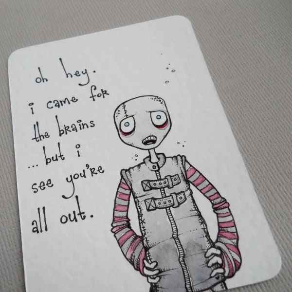 this is an original artwork in artists pens and watercolour paints, on textured white card.