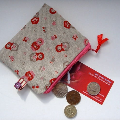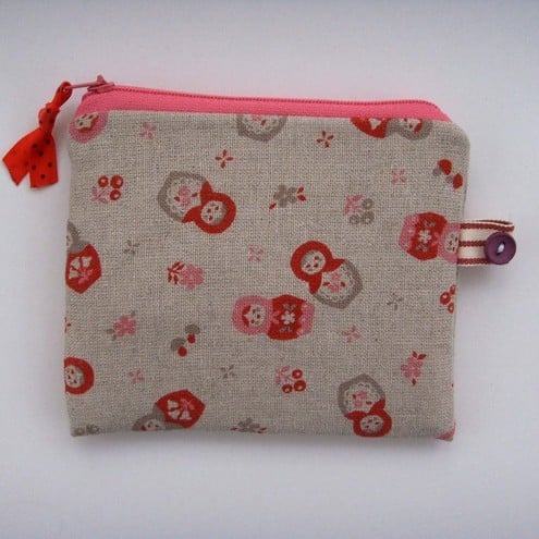 Pretty little Russian doll Japanese printed fabric coin purse, perfect for your coins, notes and cards.