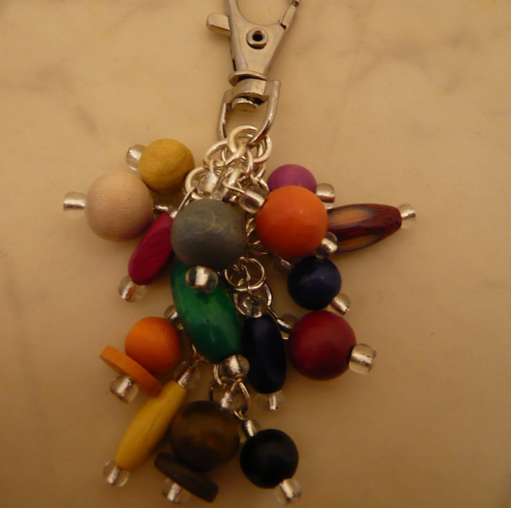Different shapes, sizes and colours complete this bag charm, measuring approx 3.5 inches including clasp.