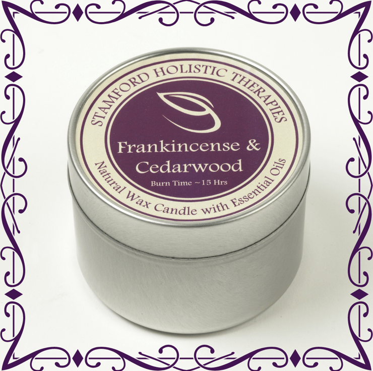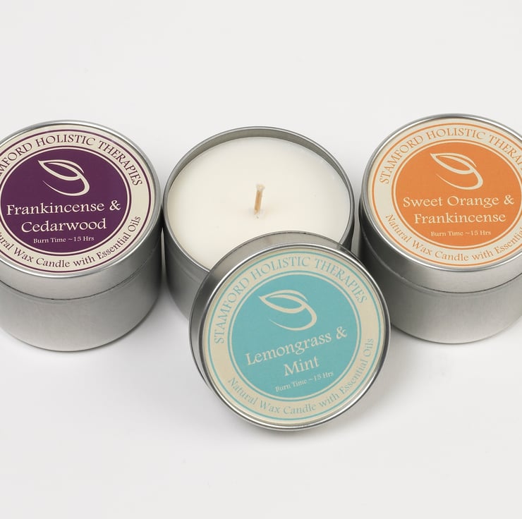Aromatherapy Tin Candle. Handmade with love from natural wax and essential oils by Stamford Holistic Candles.