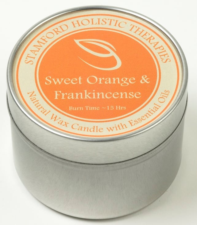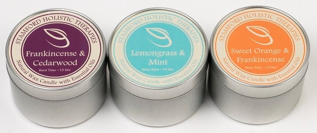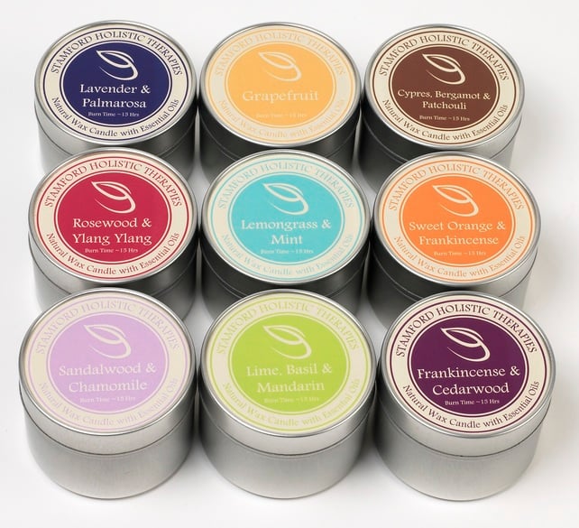 Aromatherapy Tin Candle. Handmade with love from natural wax and essential oils by Stamford Holistic Candles.