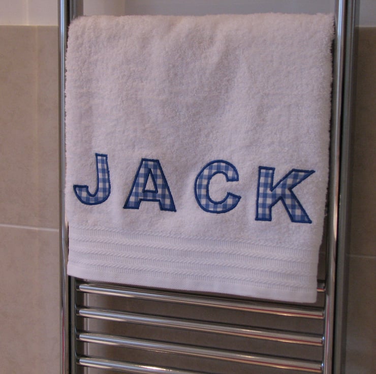 Please note: Each towel is made specifically for you so please allow up to 7 days for it to be made and posted. All you have to do is let me know what name you would like appliquéd at the checkout stage and colour of gingham.