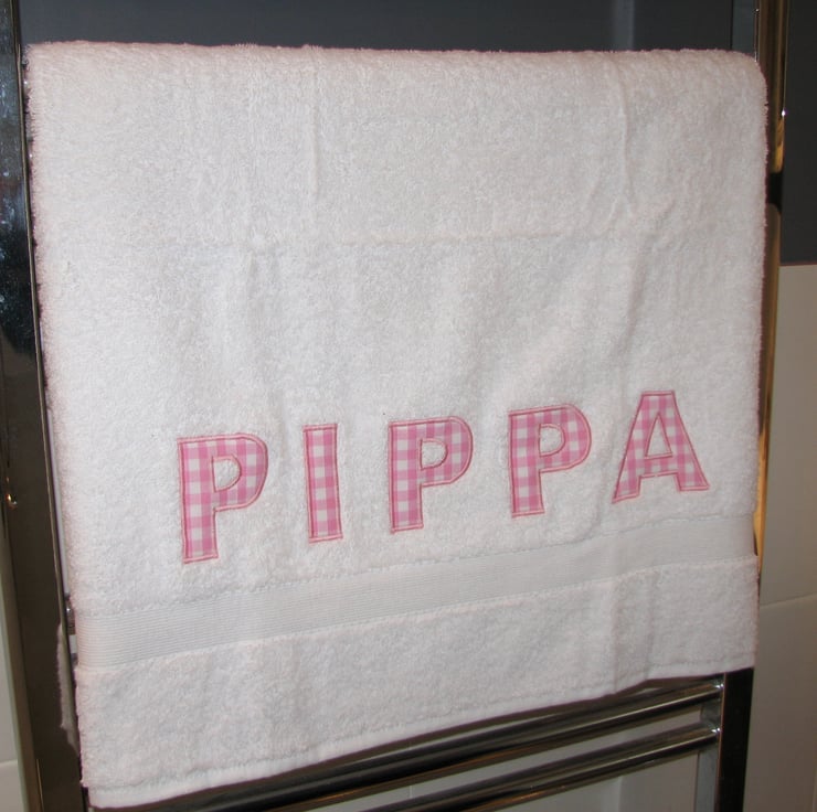 The letters are hand cut and appliquéd with a name or word and your choice of pink, blue or red gingham onto the towel. The towels are thick and luxurious, perfect for newborns through to adults.