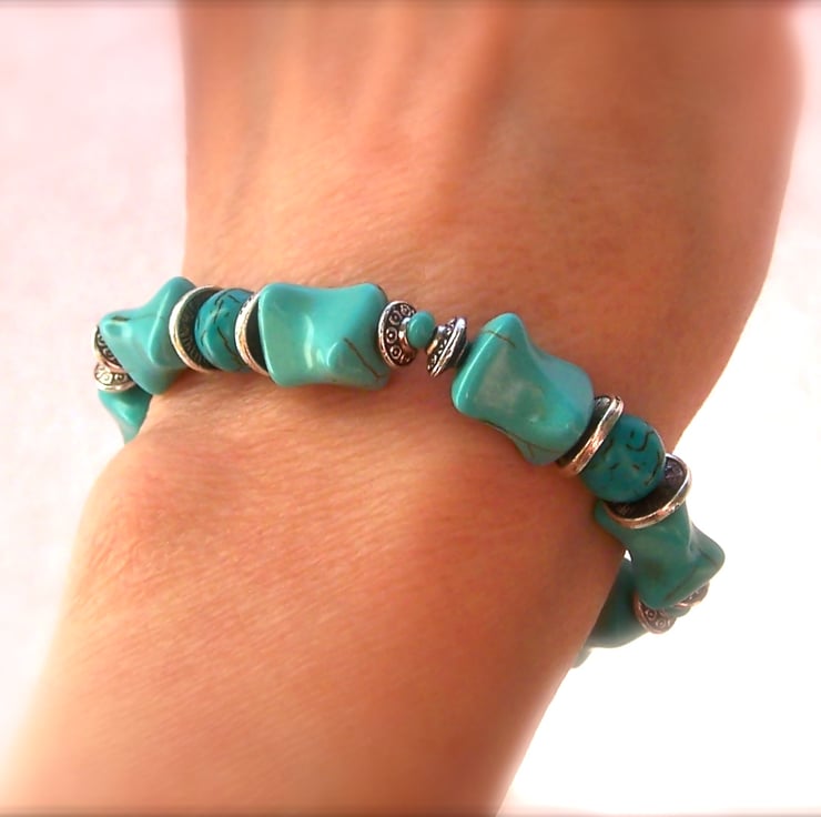 Gorgeous turquoise beads and silver spacer beads make for a classic and appealing look.