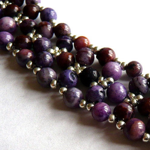 This bracelet is made of round semi precious beads and seed beads finished with a magnetic clasp.