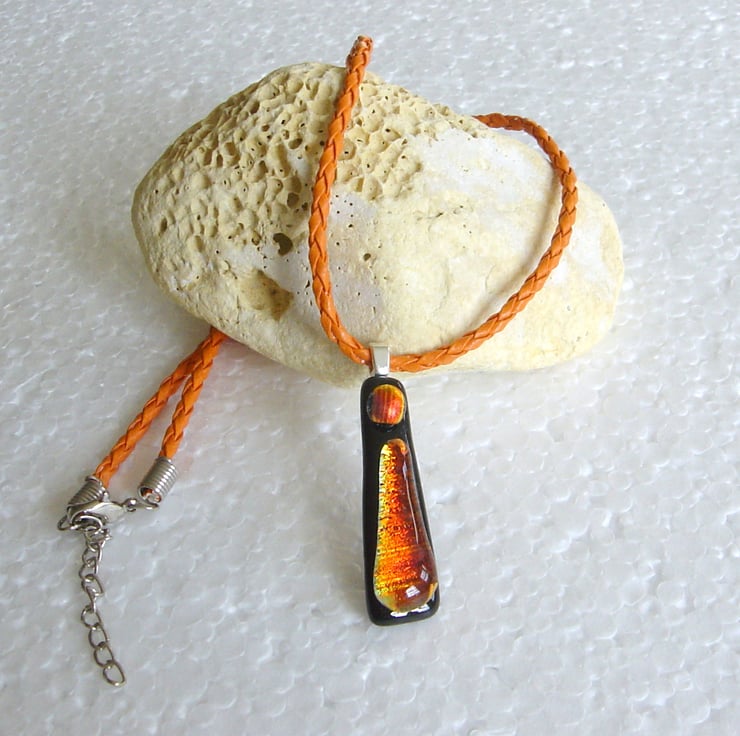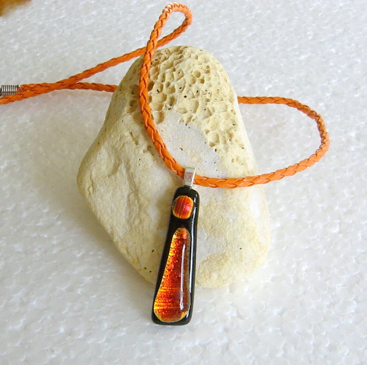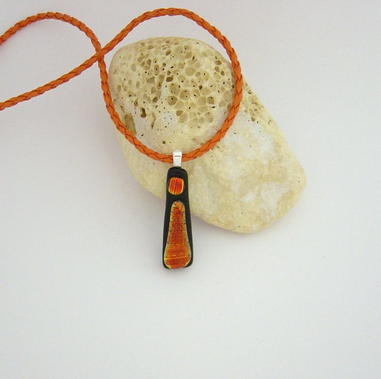 It is suspended by a small silver bail from an orange plaited cord, as shown, although it looks equally good on a silver chain. Let me know which you prefer at checkout.