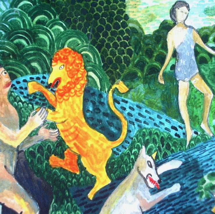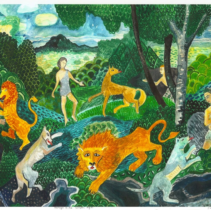 This painting is my version of the painting L'Age d'Or (The Golden Age) by André Derain which blew me away when I saw it this year in Paris at the Musée l'Orangerie- I thought it was so amazing I made my own version, my homage to a wonderful painting.
